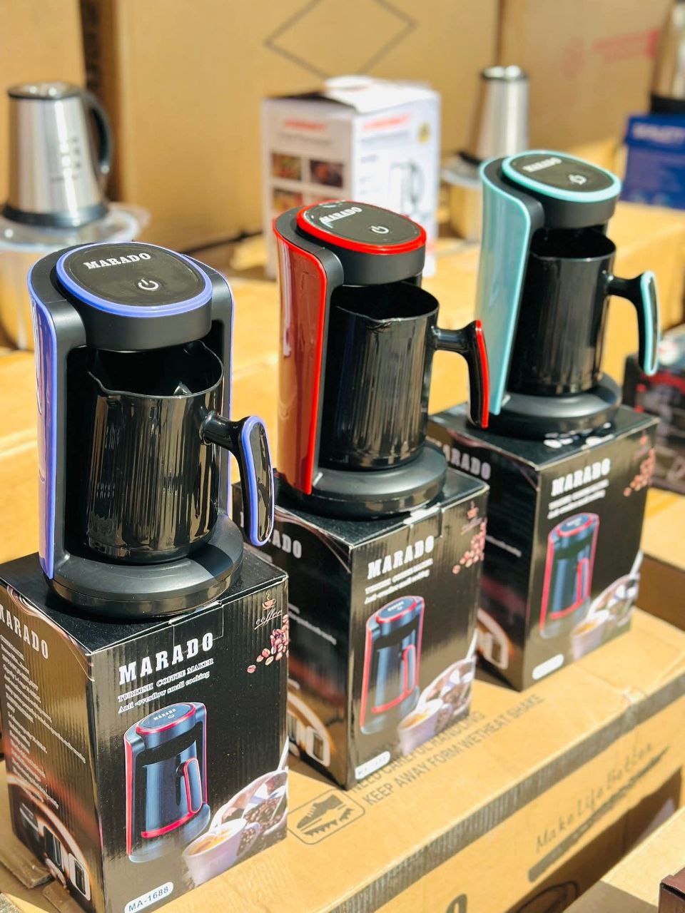 ماكينة قهوة تركي مثالية لتحضير القهوة بسرعة وسهولة. بقدرة 600 وات وسعة 1 لتر، تتميز بتصميم عصري ومدمج يناسب جميع المساحات. توفر لك ماكينة القهوة التركي 5 أكواب من القهوة الساخنة في وقت قصير. متوفرة بالألوان الأحمر، الأزرق، والأسود. تتمتع بميزات أمان مثل إيقاف التشغيل التلقائي في حال ارتفاع درجة الحرارة. مثالية لتحضير القهوة التركية، قهوة عربية، أو أي نوع آخر تفضله.